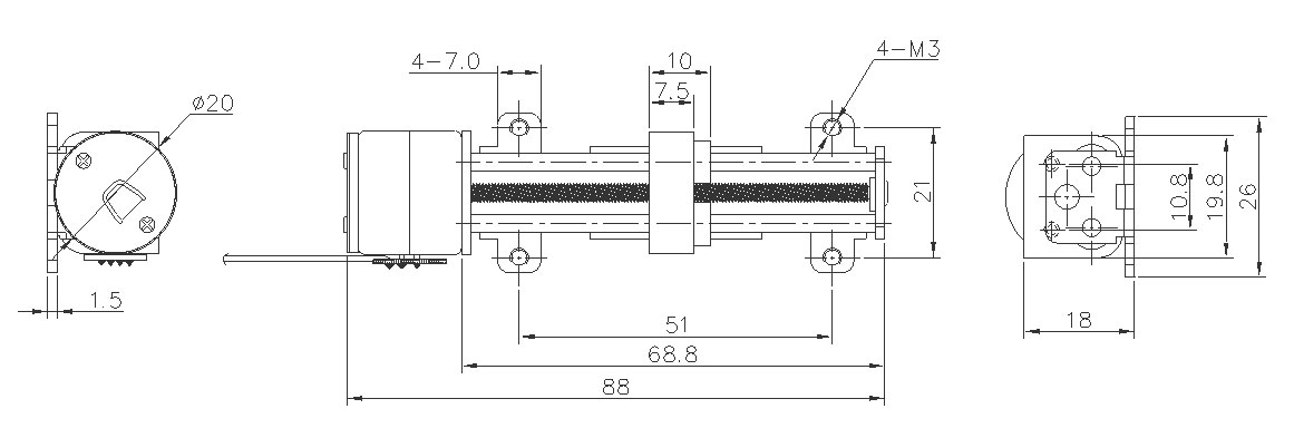 配件:丝杆、20.00*68.00mm 滑台、固定孔设计